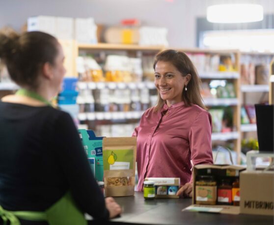 Unsere Bioprodukte aus Eigen- und Fremdanbau, sowie unsere Eigenprodukte finden auf verschiedenen Wegen zu unseren Kundinnen und Kunden. Sei es bei einem Besuch in unserem Laden und der angrenzenden Markthalle oder unserem Onlinshop, via der Wiler Kiste oder viaVeloWil. Auf welchen Wegen wir unseren Kundinnen und Kunden auch begegnen: Wir freuen uns, dass auch sie Wert legen auf nachhaltige Produkte, die unter fairen Bedingungen hergestellt werden.