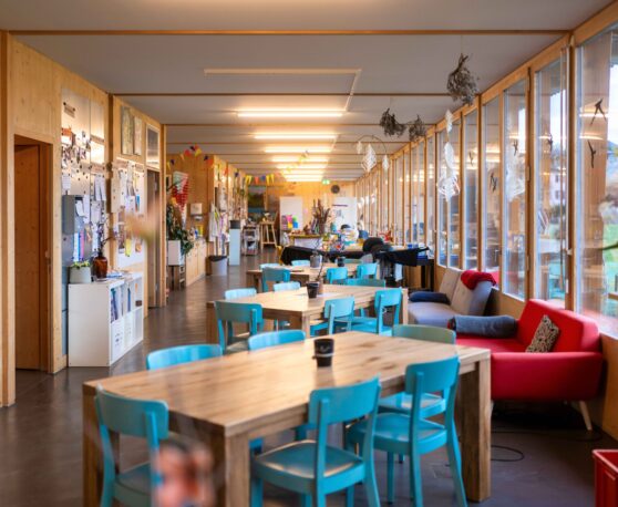 Die Besucher*innen unserer Tagesstätte erwartet eine grosse Auswahl an verschiedensten Materialien, eine gut ausgebaute Infrastruktur – verteilt auf zwei nebeneinanderliegende Gebäude – mit Medienecke, Holzwerkbank, Nähkabinett, Bibliothek, Küche, Ruheraum und vielen Nischen, die zum Stricken, Weben, Dekorieren, Malen, Digitalem Arbeiten (mit Mac oder Windows) oder einfach zum Erfinden und Kreieren einladen. Regelmässige Ausstellungsangebote laden zum Mitwirken ein, genauso wie die Weiterentwicklung unserer Angebote, die wir gemeinsam mit unseren Besucher*innen gestalten und ausbauen. Interessiert?